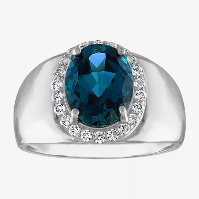 Lab Created Blue Topaz and White Sapphire Halo Ring Sterling Silver