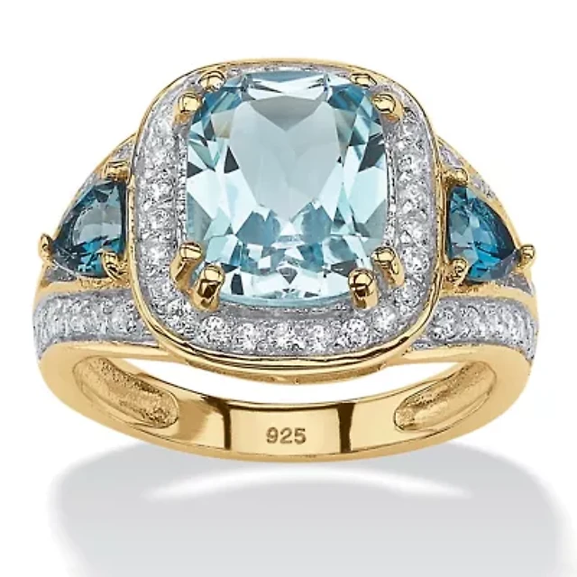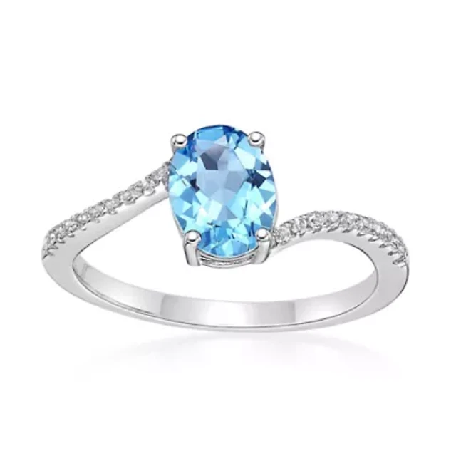 Oval-Cut Aquamarine & White Topaz Ring Sterling Silver
