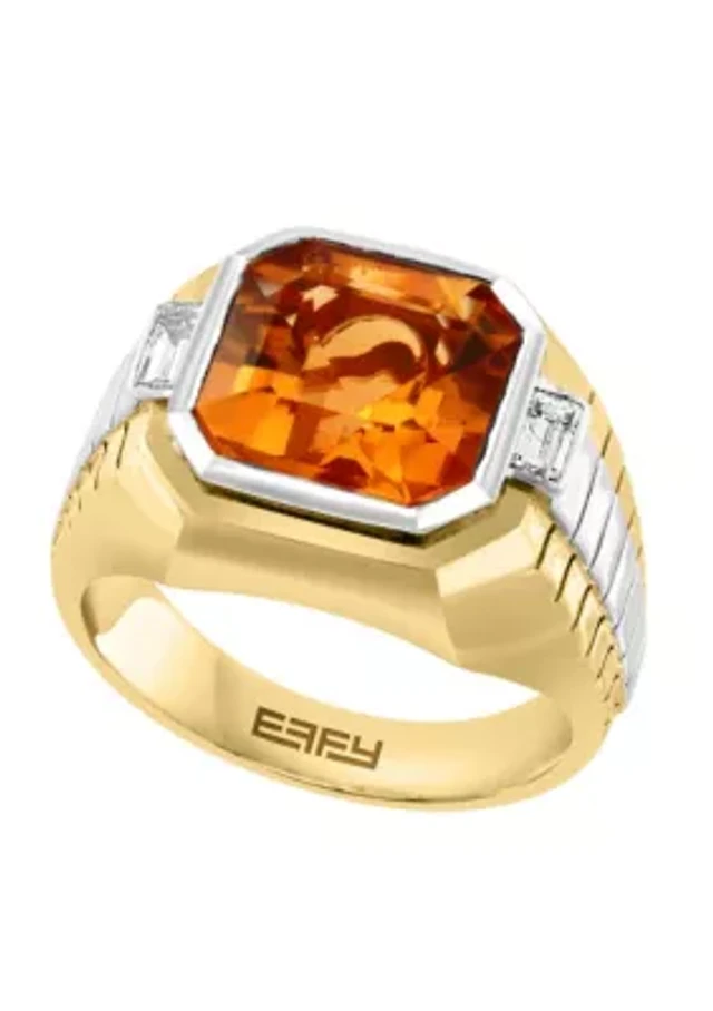 Green Quartz & White Topaz Ring Yellow Plated Sterling Silver
