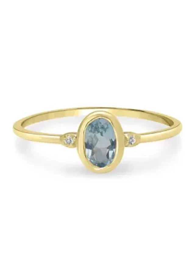 Swiss Blue Topaz & Diamond Ring 1/20 ct tw 10K Yellow Gold