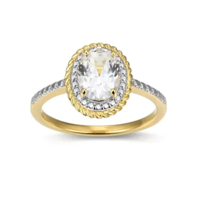 Modern Bride Gemstone Womens 3/8 CT. T.W. 10K Gold Oval Side Stone Halo Engagement Ring