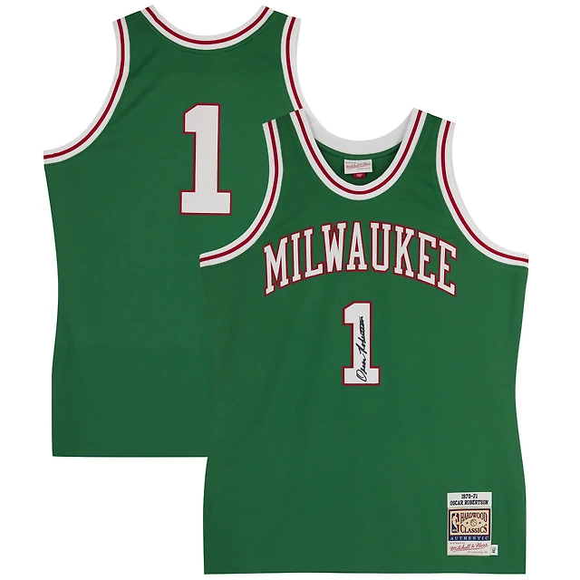 Oscar Robertson Milwaukee Bucks Autographed Mitchell & Ness Green 1970-71 Authentic Jersey - Front Signed