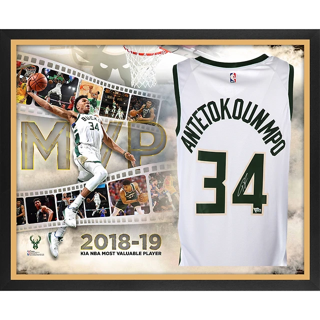 Giannis Antetokounmpo Milwaukee Bucks Framed Autographed Nike White Swingman Jersey 2019 NBA MVP Collage