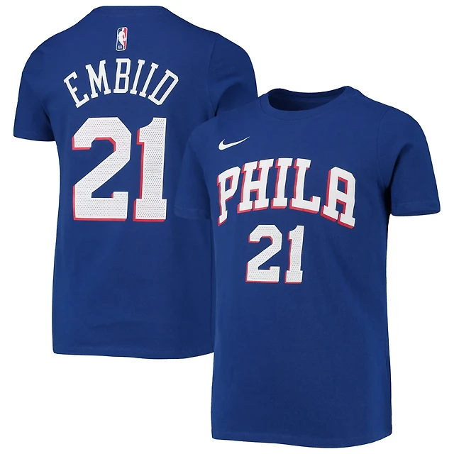 Youth Nike Joel Embiid Philadelphia 76ers Logo Name Number Performance T-Shirt