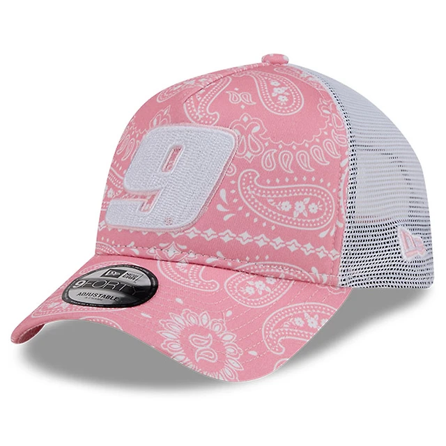 Men's New Era Pink Chase Elliott 9FORTY A-Frame Trucker Paisley Adjustable Hat