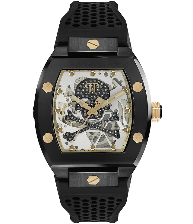 Philipp Plein Men's The Skeleton Automatic Grey Dial Black Silicone Strap Watch