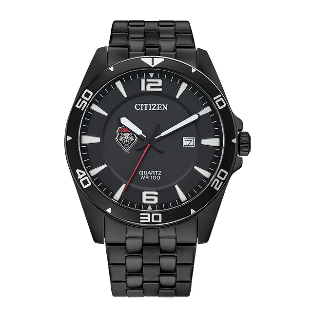 Men's New Mexico Lobos Citizen Quartz Black-Tone Stainless Steel Watch
