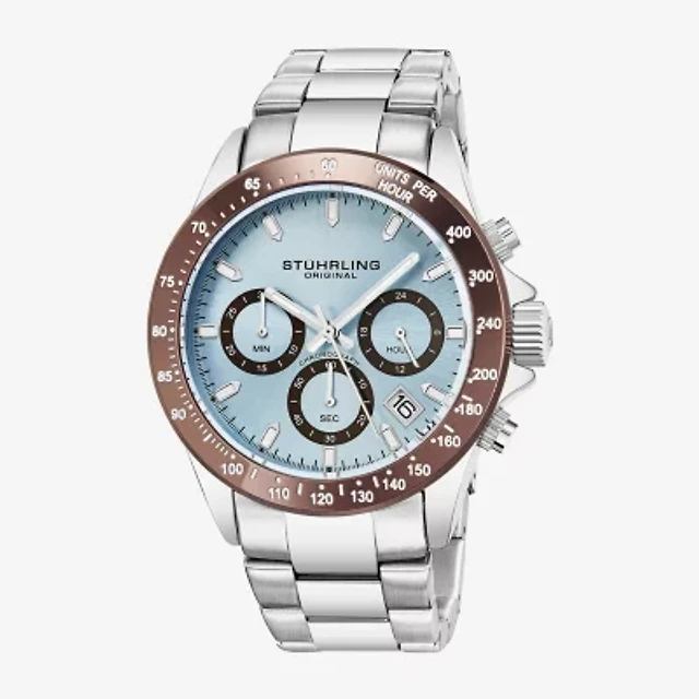 Stuhrling Mens Chronograph Silver Tone Stainless Steel Bracelet Watch 3960