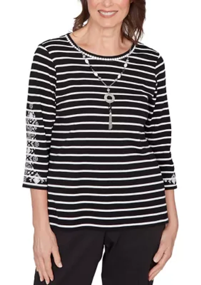 Hearts Of Palm Floral Horseshoe Womens Split Crew Neck 3/4 Sleeve T-Shirt