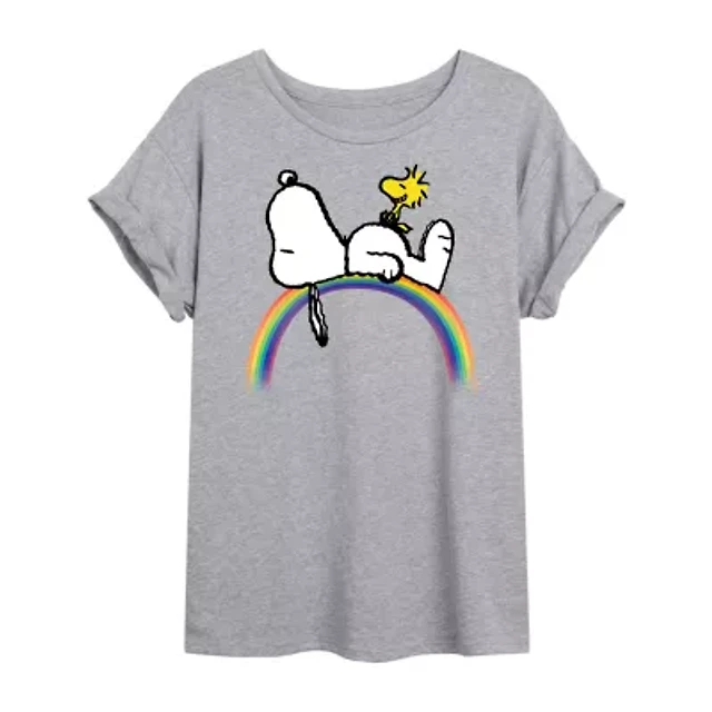 Candy Heart Grid Womens Crew Neck Short Sleeve Classic Fit Peanuts Graphic T-Shirt