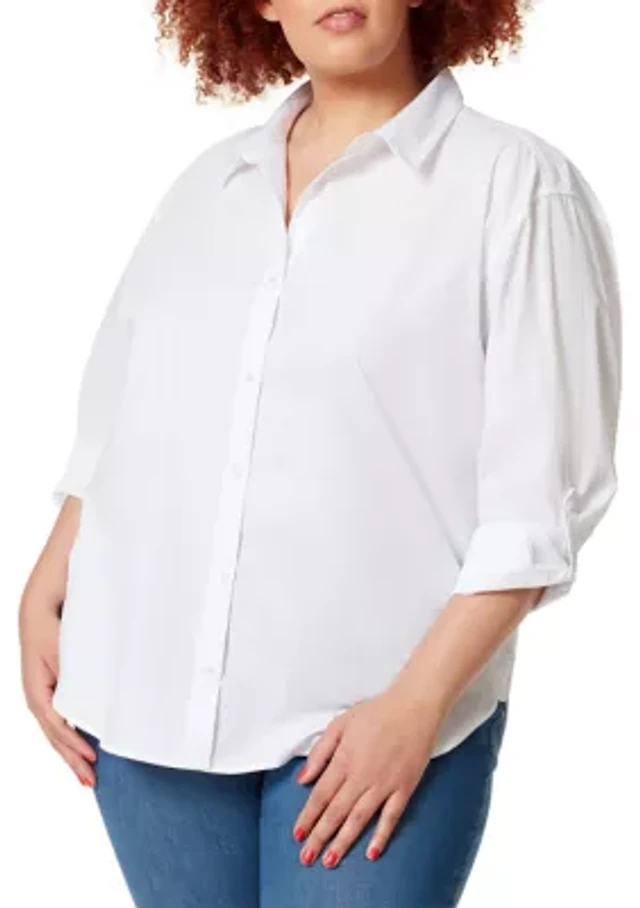 Plus Short Dolman Sleeve Woven Button Down Shirt
