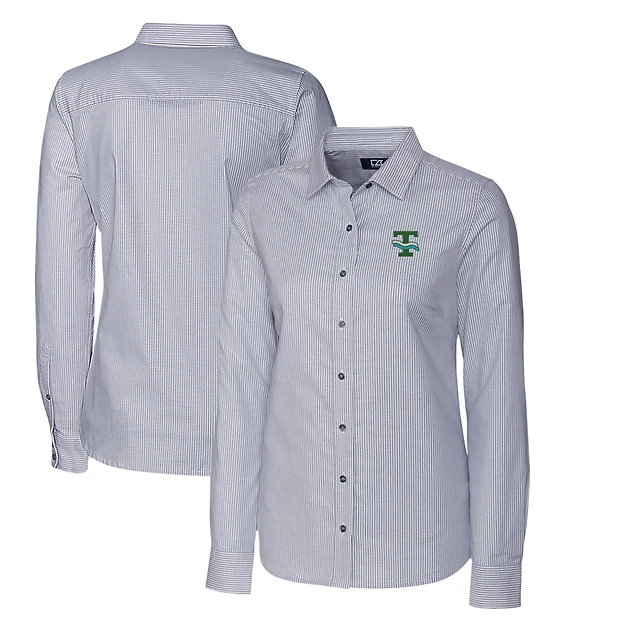 Women's Cutter & Buck Charcoal Tulane Green Wave Oxford Stripe Stretch Long Sleeve Button-Up Shirt