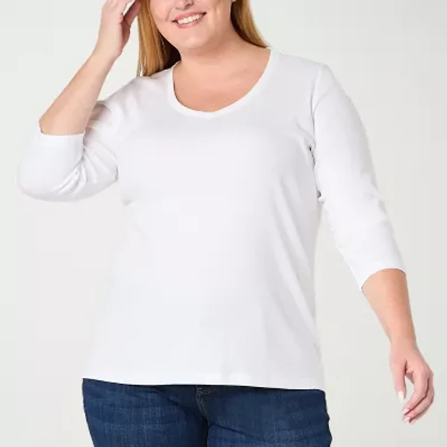 St. John's Bay Womens Tall V Neck 3/4 Sleeve T-Shirt