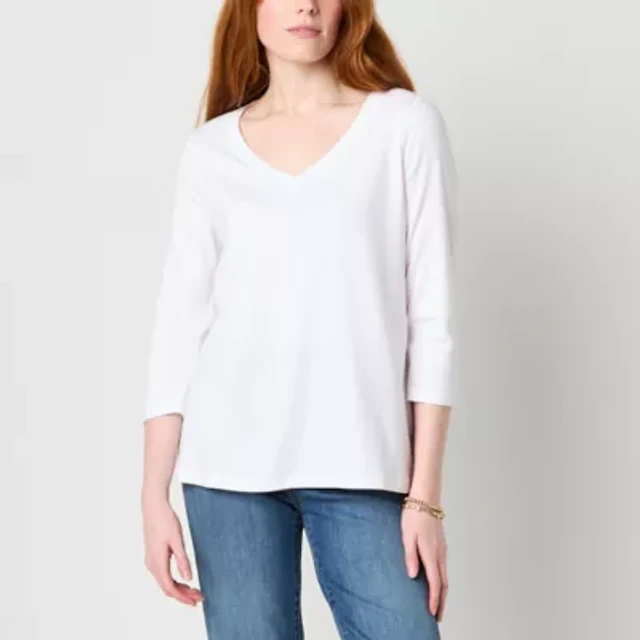 St. John's Bay Womens Easy-on + Easy-off V Neck 3/4 Sleeve Adaptive T-Shirt