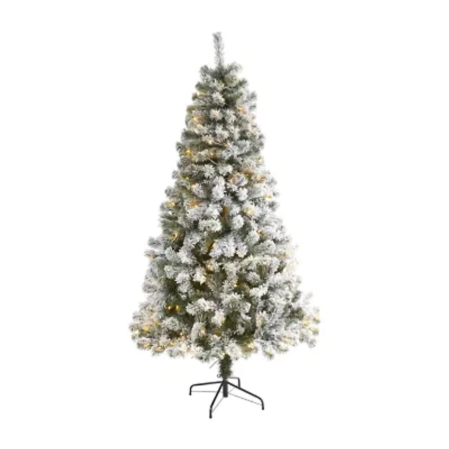 6.5ft. Pre-Lit Flocked Natural Emerald Medium Artificial Christmas Tree, Clear Lights