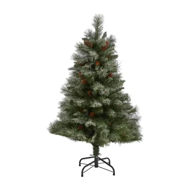 Nearly Natural 4 Foot Pre-Lit Flocked Pine Christmas Tree