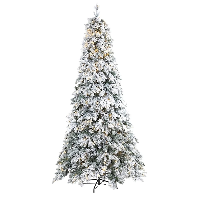 9ft. Pre-Lit Flocked Oregon Pine Artificial Christmas Tree, Clear LED Lights