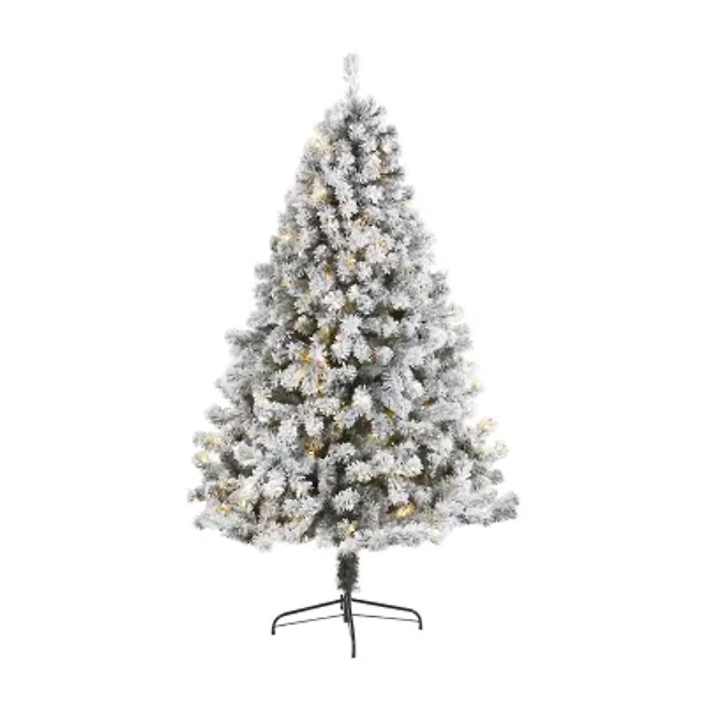 Nearly Natural 6 Foot Flocked Vermont Mixed Pine With 300 Clear Led Lights Pre-Lit Artificial Christmas Tree