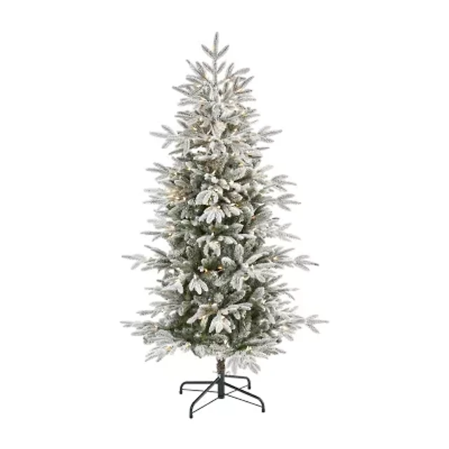 Hello Honey® 3ft. Faux Green Tree with Snow Finish & Wood Base