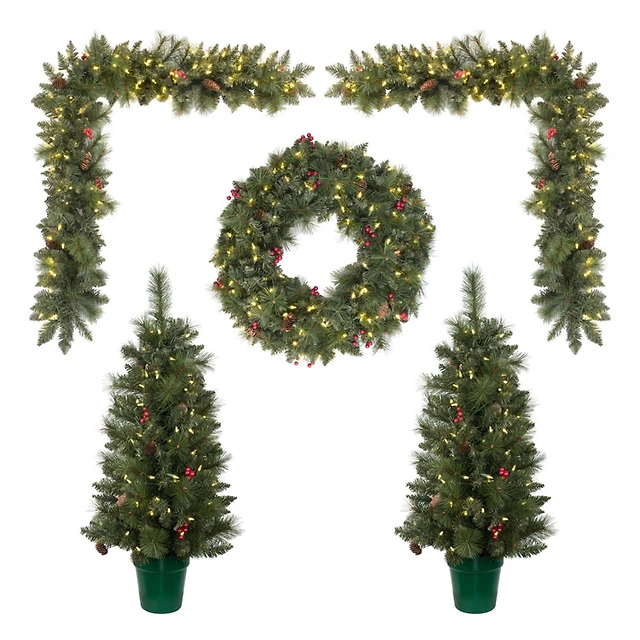 5-Piece Pre-Lit Front Door Artificial Christmas Set, Clear LED Lights