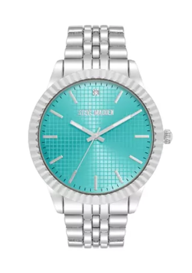 Steve Madden Men's Coin Edge Turquoise and Silver-Tone Alloy Metal Watch, 44mm