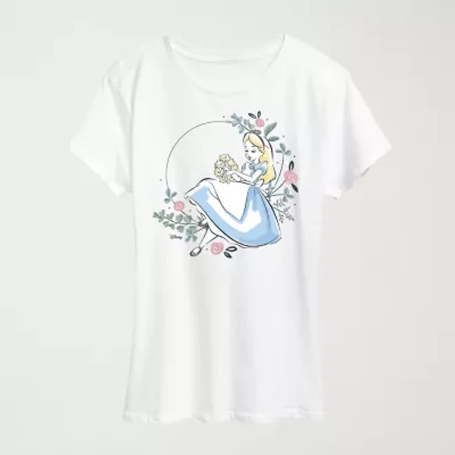 Womens Juniors Crew Neck Short Sleeve Regular Fit Mickey and Friends Mouse Graphic T-Shirt