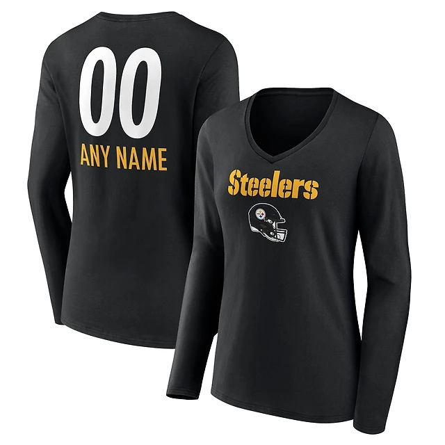 Women's Black Pittsburgh Steelers Team Authentic Personalized Name & Number Long Sleeve V-Neck T-Shirt