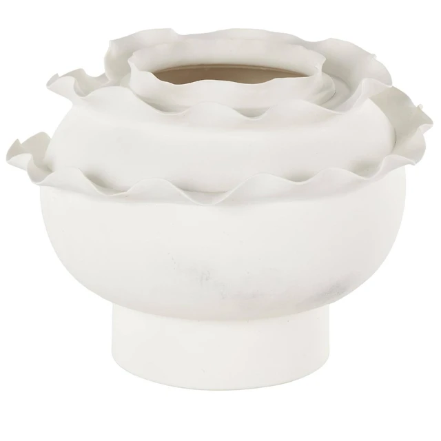 CosmoLiving by Cosmopolitan 16" White Ceramic Vase with Abstract Gold Melting Drips