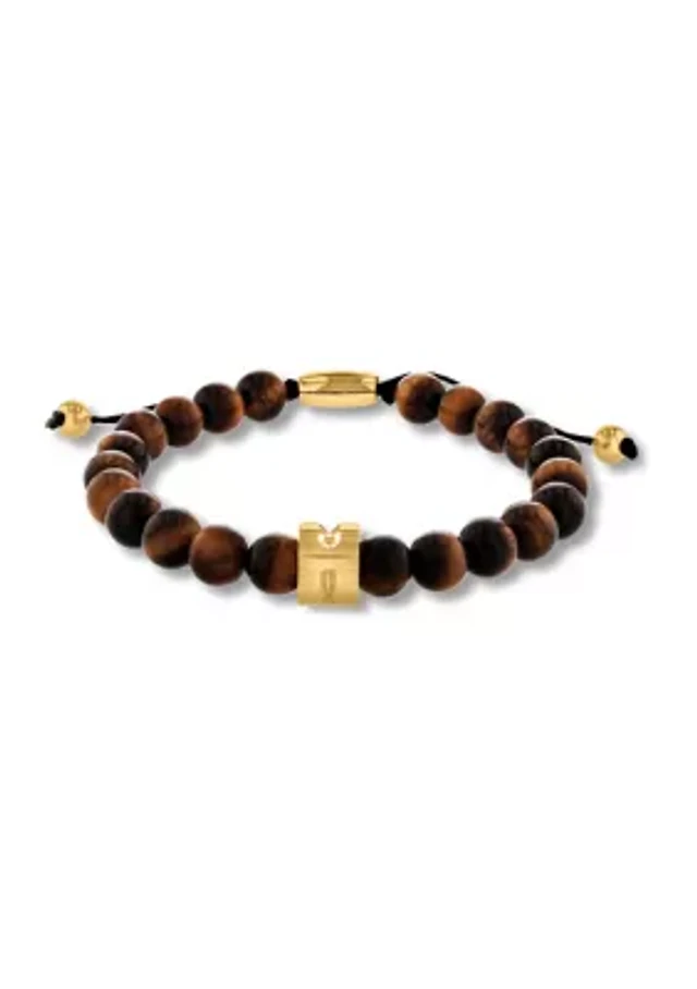 Tiger's Eye Bead and Gold-Tone Stainless Steel Bolo Bracelet