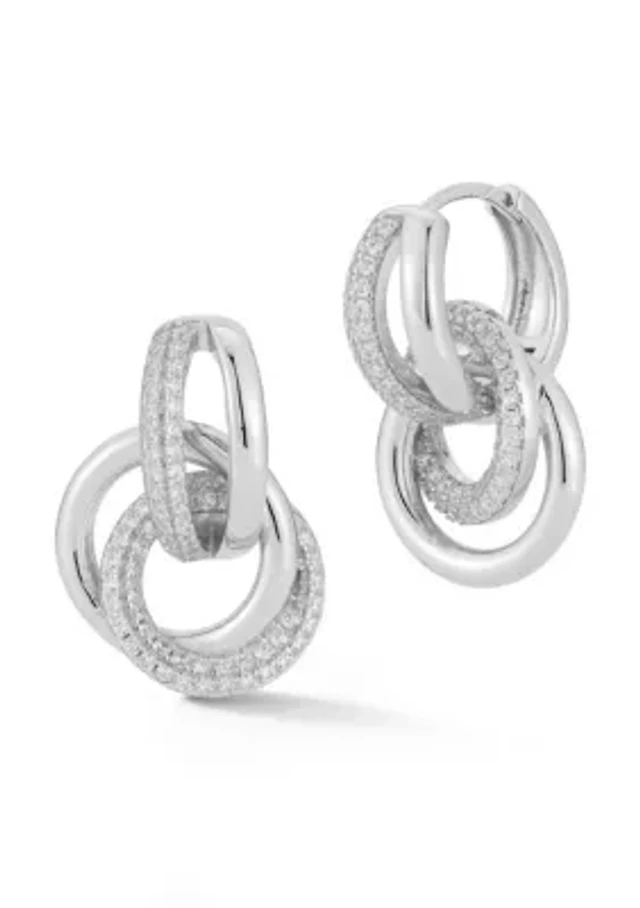 Sterling Silver Multi Ring Dangle Earrings with Cubic Zirconia