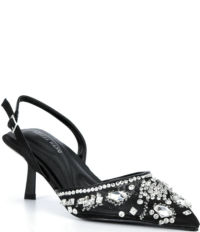 J. Renee Tressa Rhinestone Mesh Slingback Kitten Heel Dress Pumps