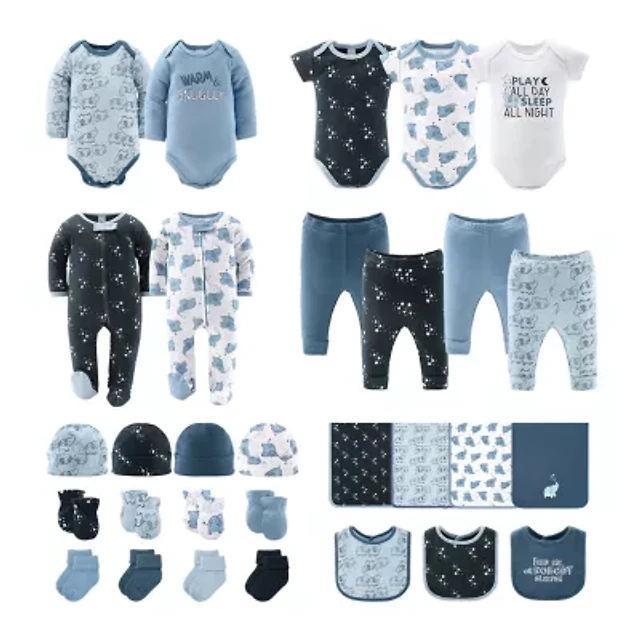 The Peanutshell 0-3m Floral Elephant Baby Unisex 30-pc. Baby Clothing Set