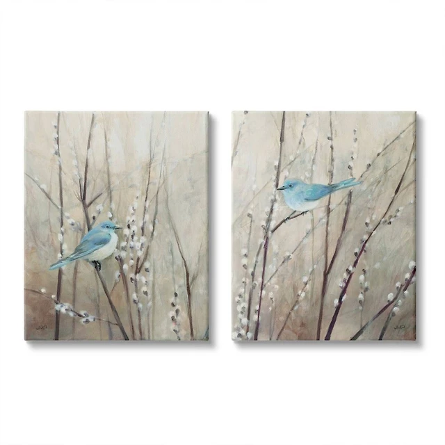Stupell Industries Minimal Woodland Rabbit with Perched Birds Painting, 7" x 17"