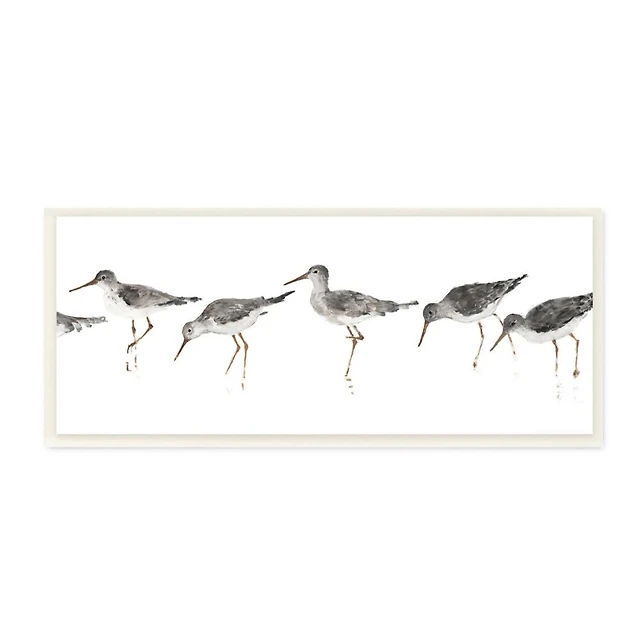 Stupell Industries Sandpiper Bird Stances Minimal Grey White Painting,7" x 17"