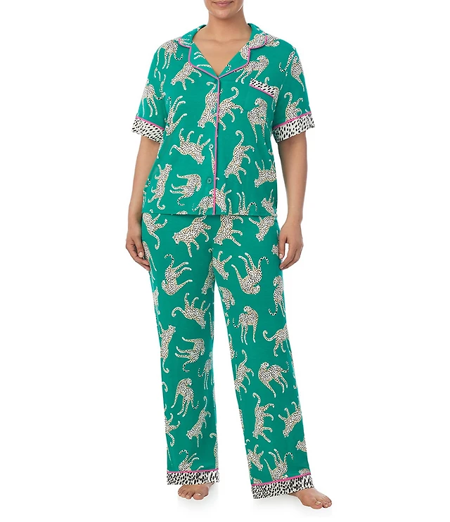 BedHead Peas In A Pod Print Short Sleeve Notch Collar Cotton Knit Cropped Pajama Set