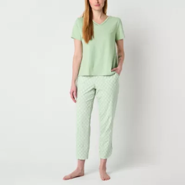 Sleep Chic Womens Crew Neck Long Sleeve 2-pc. Pajama Sets
