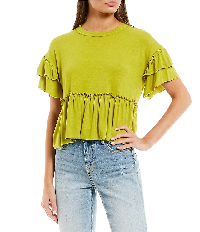 Sugarlips Ruffle Mock Neckline Sleeveless Smocked Peplum Top