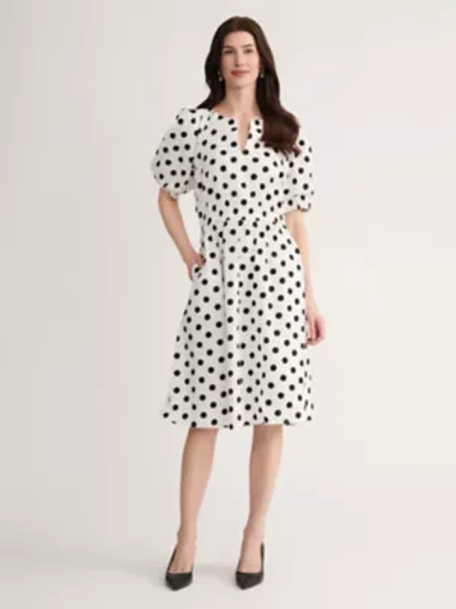 Women's Puff Sleeve Button Front Poplin Shirtdress
