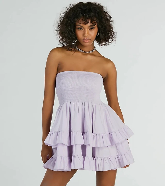 Coastal Vacay Tie-Shoulder Ruffled Short Dress