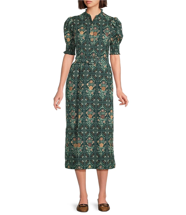 FRANCES VALENTINE Nancy Poplin High Neck Short Sleeve Shirt Waist Dress