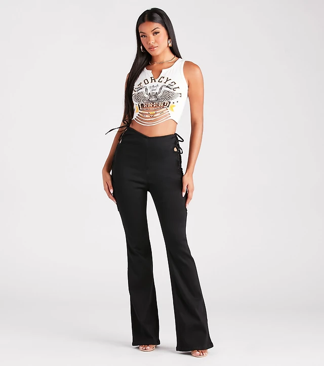 Love The Look Lace-Up Faux Leather Flare Pants