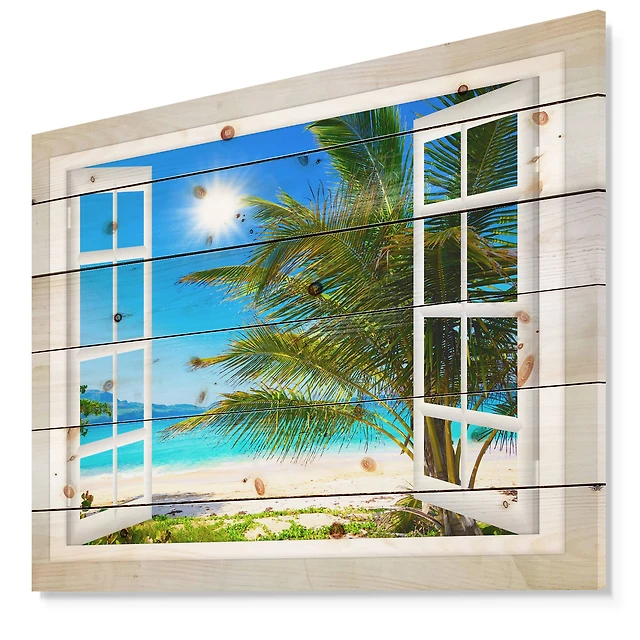 Designart - Window Open to Beach with Palm