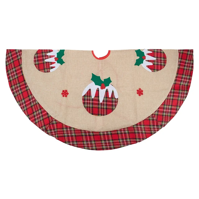 48" Christmas Puddings Burlap Plaid Tree Skirt