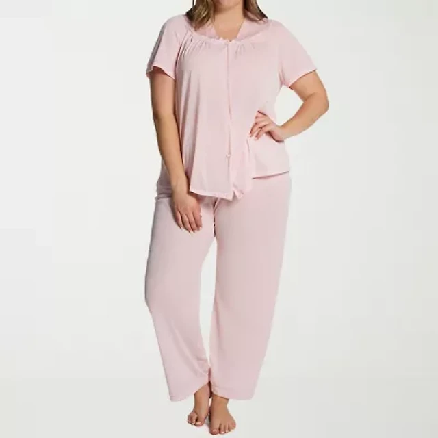 Exquisite Form Womens V-Neck Short Sleeve 2-pc. Plus Pajama Sets