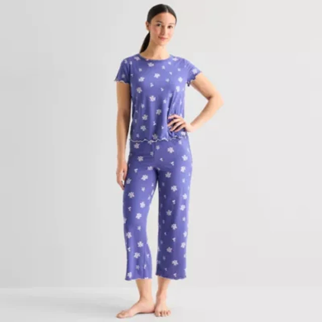 Arizona Body Womens Rib Crew Neck Short Sleeve Juniors Pajama Top