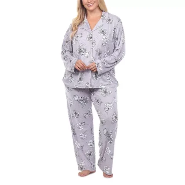 White Mark Womens Satin Long Sleeve 2-pc. Plus Pajama Sets
