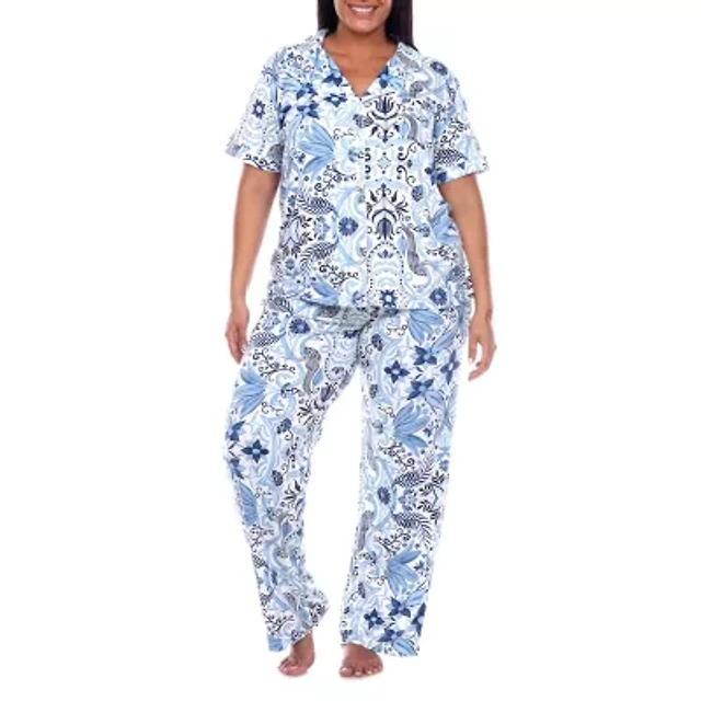 Ambrielle Womens V-Neck Short Sleeve 2-pc. Plus Pajama Sets