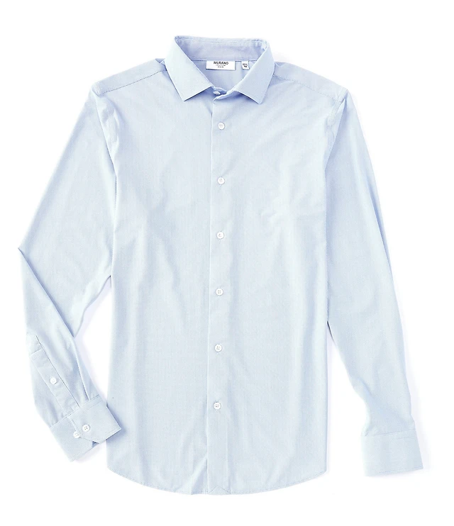 Perry Ellis Slim Fit Stretch Dobby Long Sleeve Mini Tonal Dot Print Shirt