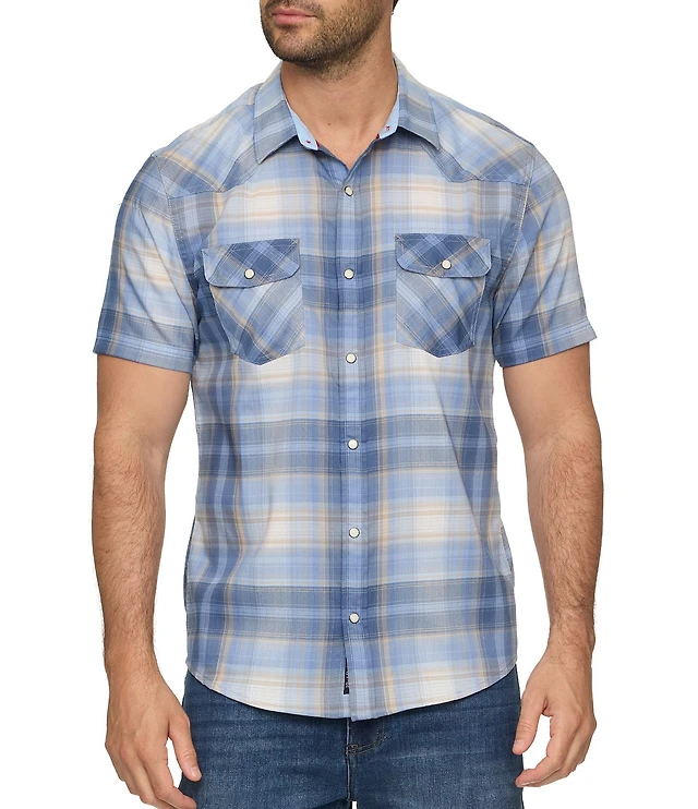 Flag and Anthem Bluffs UPF Performance Plaid Short Sleeve Woven Western Shirt