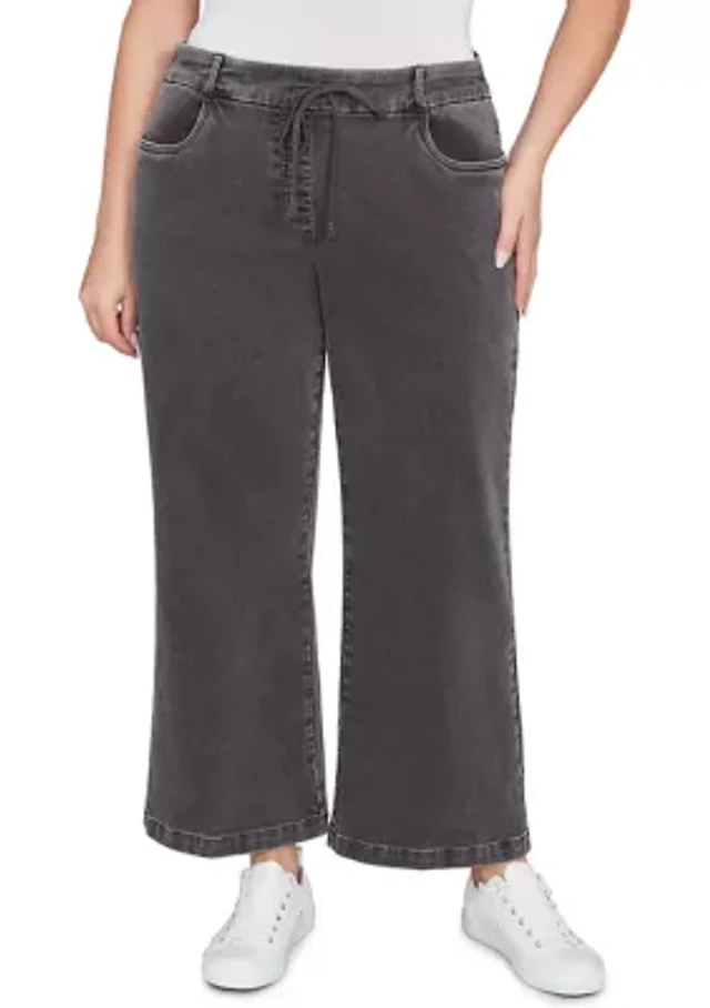 Plus Wide Leg Cargo Pocket Sweater Pants